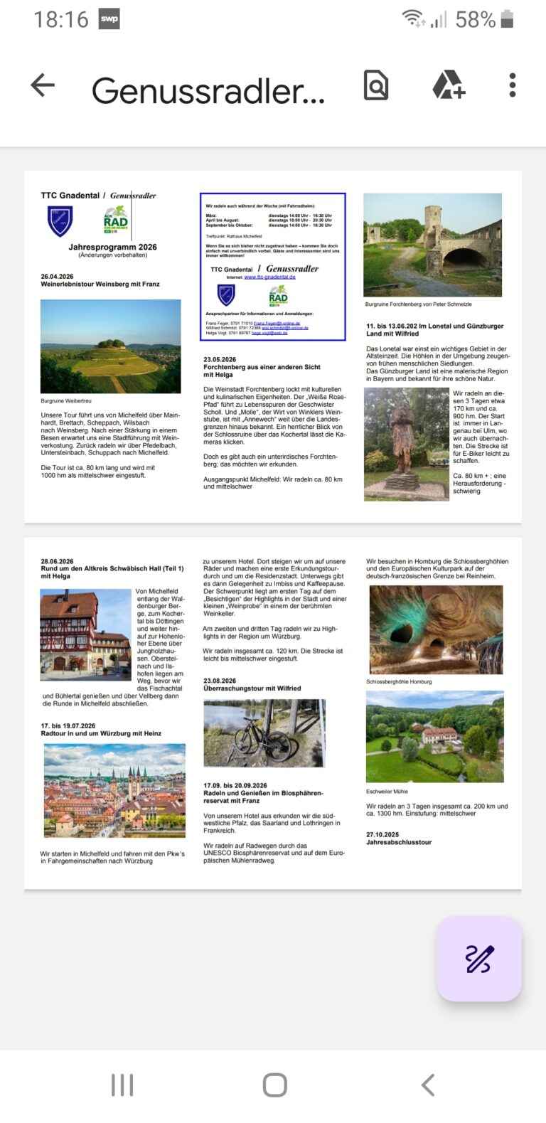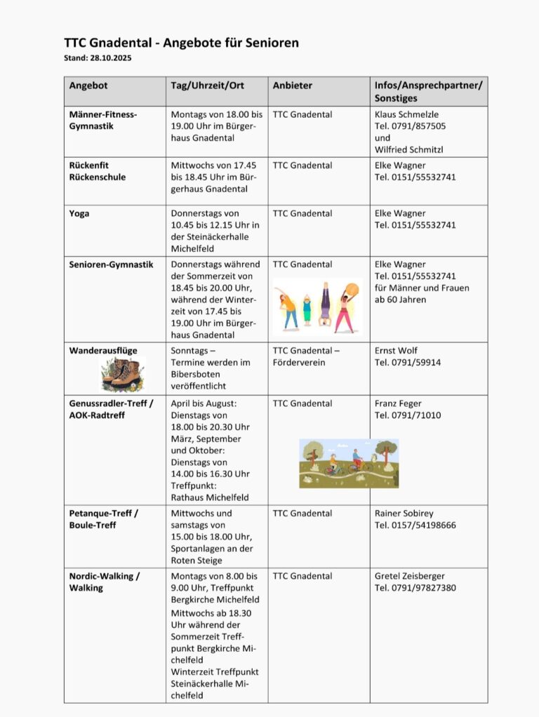 Die TTC- Genussradler freuen sich auf dein Kommen. Jeden Dienstag starten wir um 18 Uhr am Rathaus Michelfeld zu einer 2-stündigen Ausfahrt. Infos bei deinem Radguide Franz Feger 0791-71010 […]